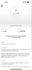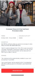 - Look for the banner titled ‘Overseas Shop & Dine Cashback Promotion 2025’ and tap to register.